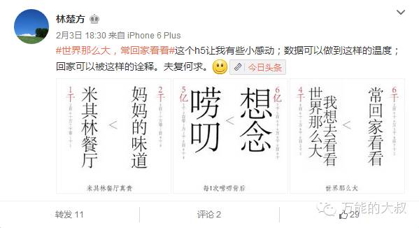3、習慣問題。微信的打開頻率確實遠遠高于微博,且平臺更為私密和小眾,現在,越來越多的大佬選擇在朋友圈發表看法和評論,而再微博往往說一些高大上的事或基本對微博停止了更新。