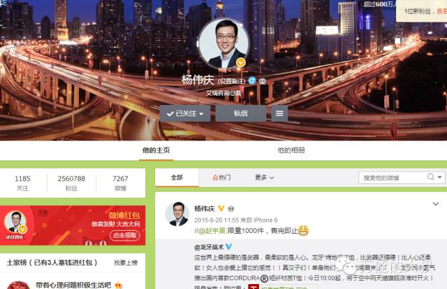 以往的公關戰,主戰場都發生在擁有認證功能和具有廣場作用的微博,但這次,卻完全發生在相對私密的朋友圈。大叔專門去上訴幾位當事人的微博查詢發現,張一鳴的最后一條微博是2015年11月17日,林楚方雖然在昨天還更新了微博,但今天沒有更新,只有張利東今天同步更新了微博,提到了艾瑞。而擁有256萬粉絲的楊偉慶的微博還停留在2015年的8月20日。值得一提的是,林楚方和張利東的微博都沒有認證。