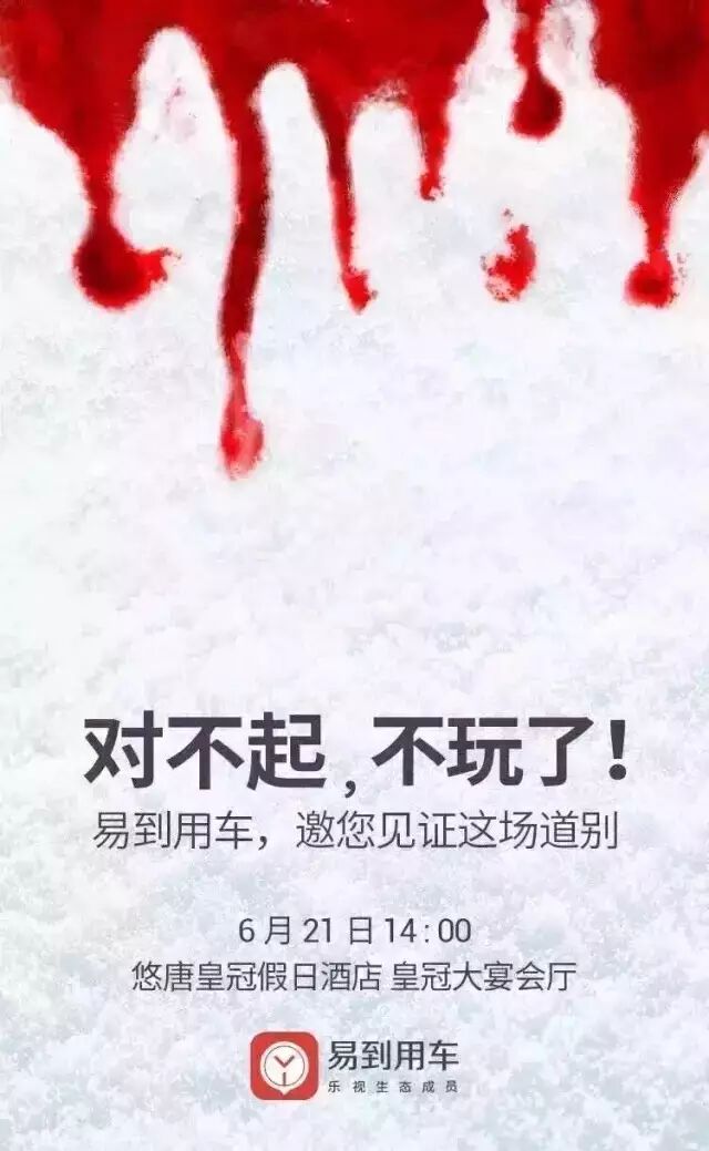 而在近日,這張易到6.21發(fā)布會的邀請函刷爆了朋友圈,選擇放棄或者涅槃重生,哪種更難?易到這張創(chuàng)意海報鋪設(shè)的伏筆到底有多大?