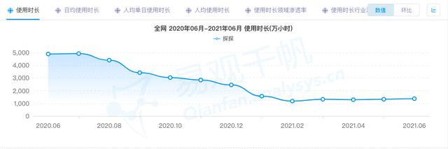 從產品角度來看,探探只是一個更低迷的陌陌。根據易觀千帆數據,近一年探探月活明顯呈下降趨勢,使用時長、啟動次數等能體現用戶粘性的數據指標,更是在 2021 年出現斷崖式下跌。