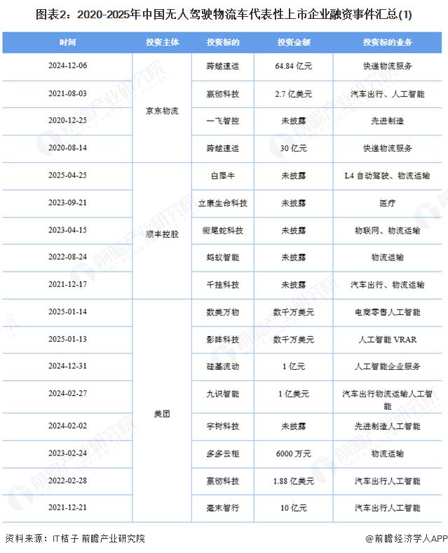 啟示 2025:中國無人駕駛物流車行業投融資及兼并重組分析(附投融資匯總、產業基金和兼并重組等)