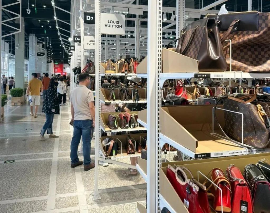 從輕奢品牌 COACH、MK、MCM 到 GUCCI、YSL、LV 再到愛馬仕、香奈兒、Moynat、Valextra、Delvaux 等 " 頂奢 " 包袋應有盡有,熱門的 LV,滿滿擺了三大排。