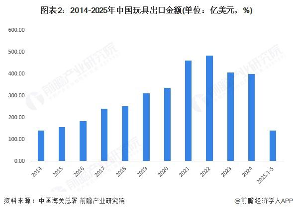2014-2022 年期間,我國(guó)玩具出口金額呈現(xiàn)出穩(wěn)步攀升的態(tài)勢(shì),這一增長(zhǎng)趨勢(shì)反映了我國(guó)玩具產(chǎn)業(yè)在全球市場(chǎng)上的強(qiáng)勁競(jìng)爭(zhēng)力以及海外消費(fèi)者對(duì) " 中國(guó)制造 " 玩具產(chǎn)品的持續(xù)青睞。然而,自 2023 年起,玩具出口金額的增長(zhǎng)勢(shì)頭有所放緩,出現(xiàn)了下降的情況。這種變化主要是受全球經(jīng)濟(jì)恢復(fù)不如預(yù)期、地緣沖突、貿(mào)易保護(hù)主義抬頭等客觀因素影響,同時(shí)美國(guó)作為我國(guó)玩具市場(chǎng)第一大出口國(guó)在對(duì)等關(guān)稅政策下,出口壓力持續(xù)增加。