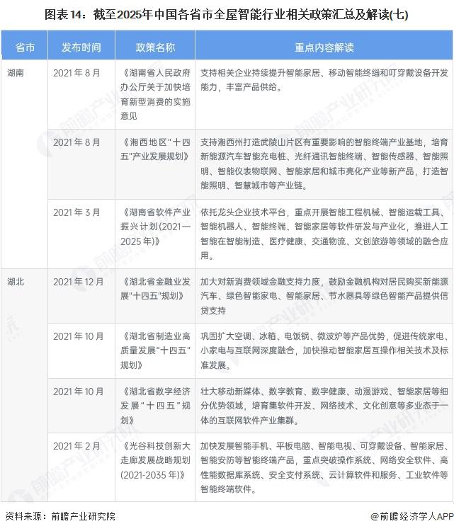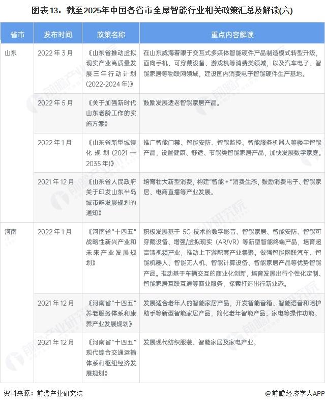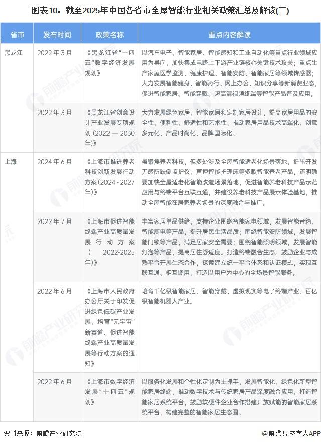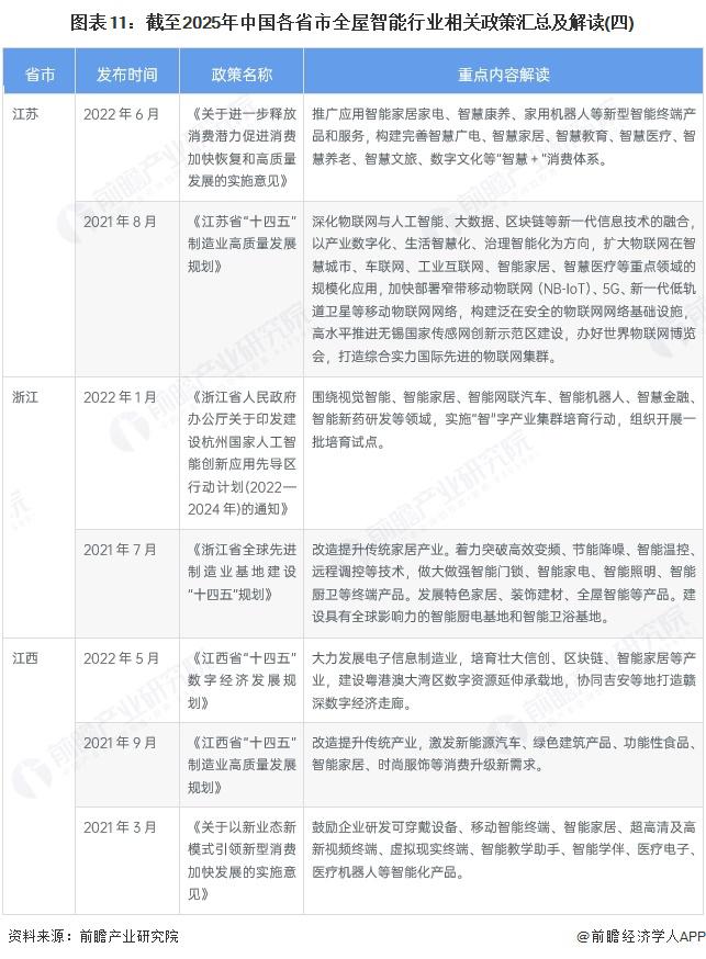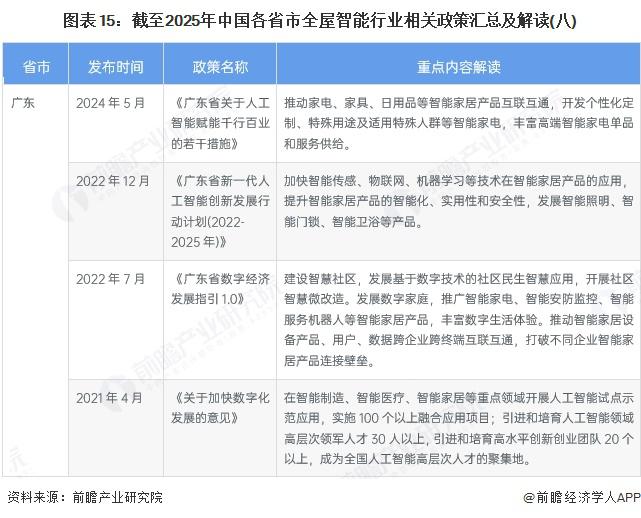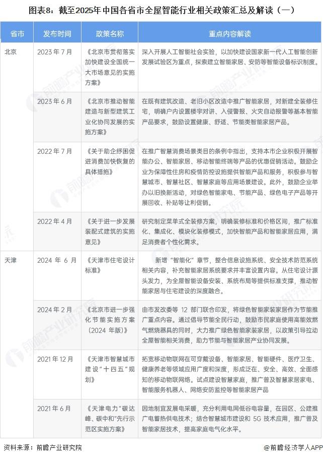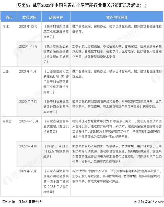 截至 2025 年各省市全屋智能行業相關政策匯總如下: